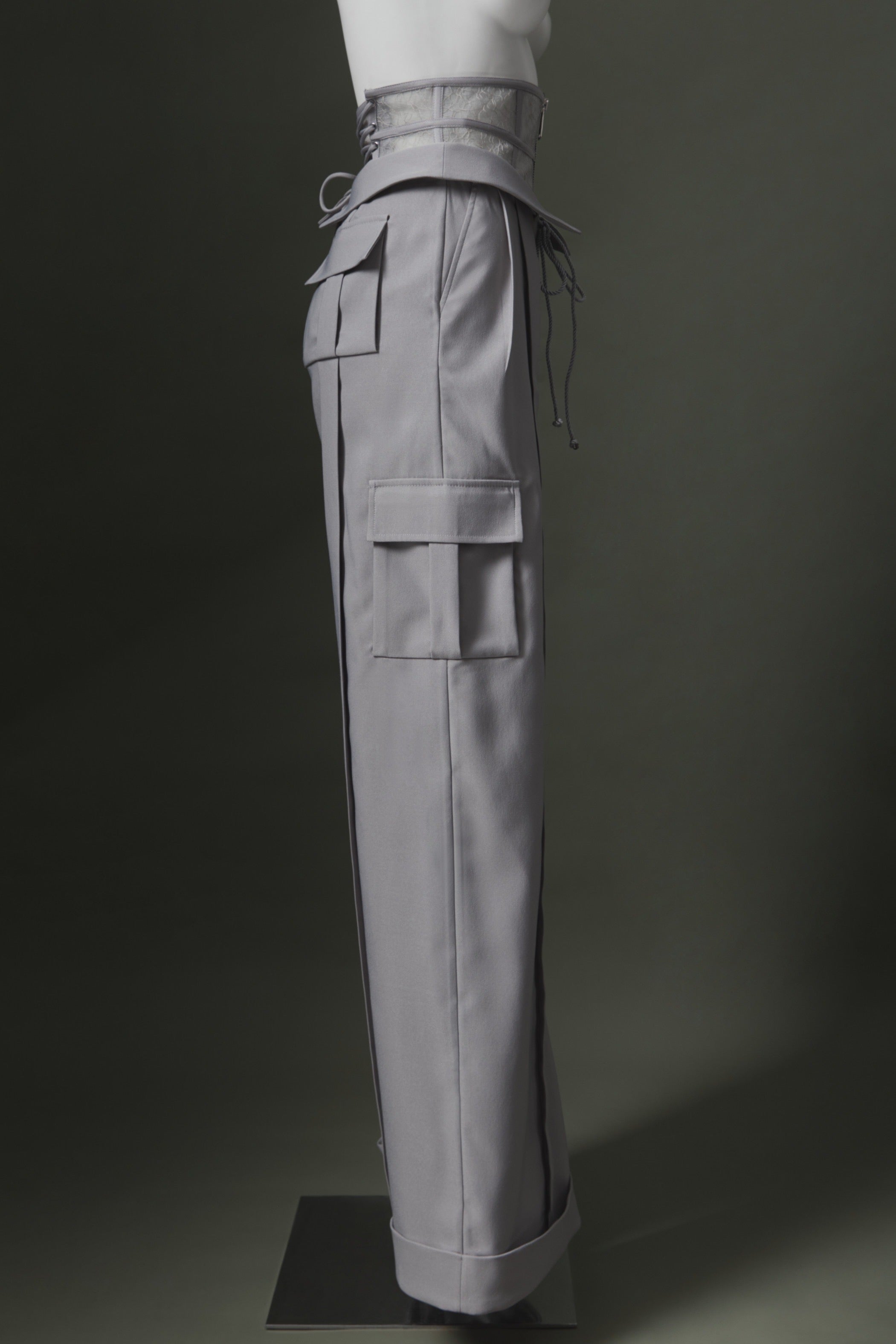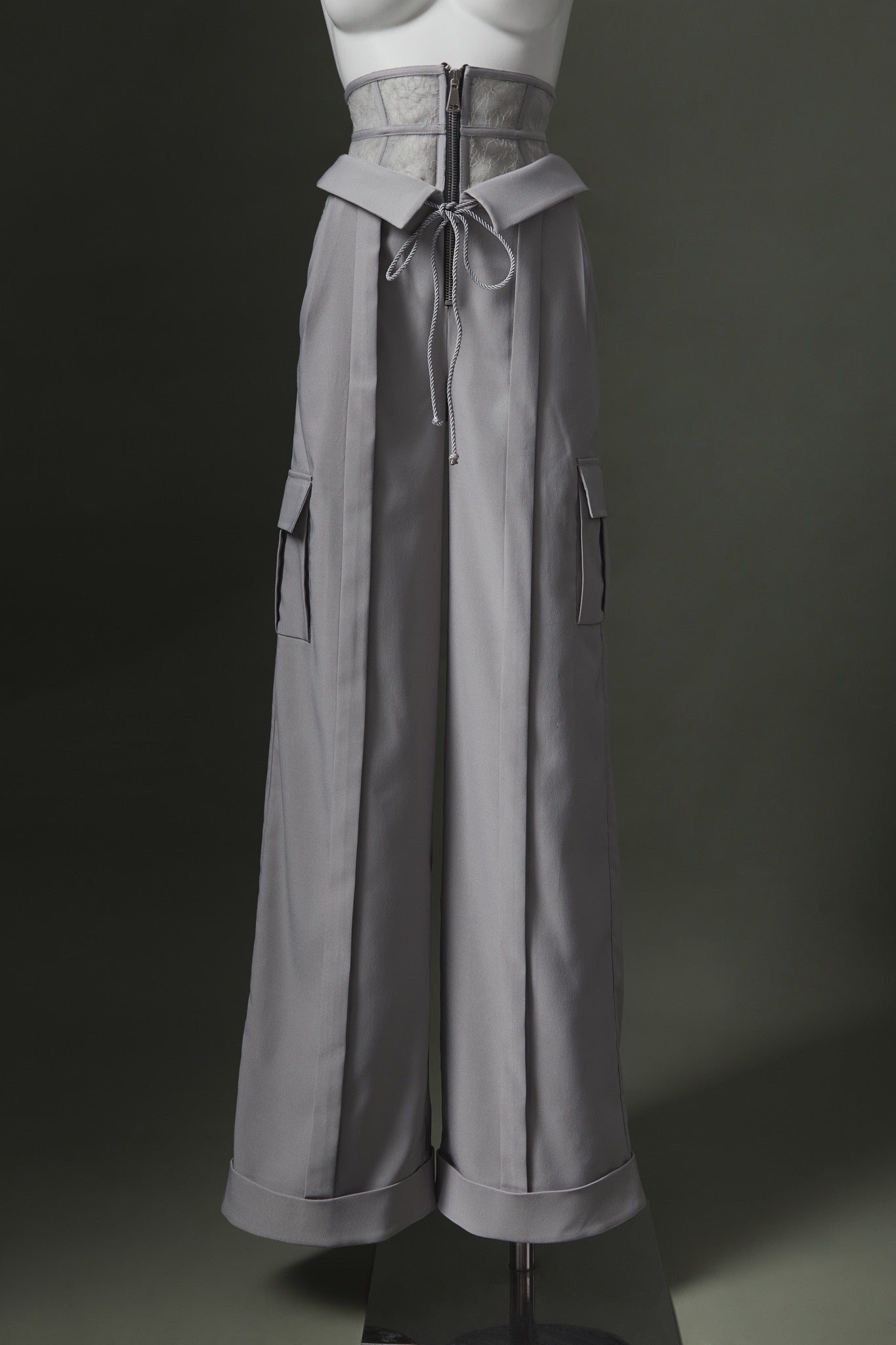Double leg with adjustable laces at the back and pocket details, lace girdle pants. It is made of viscose fabric.