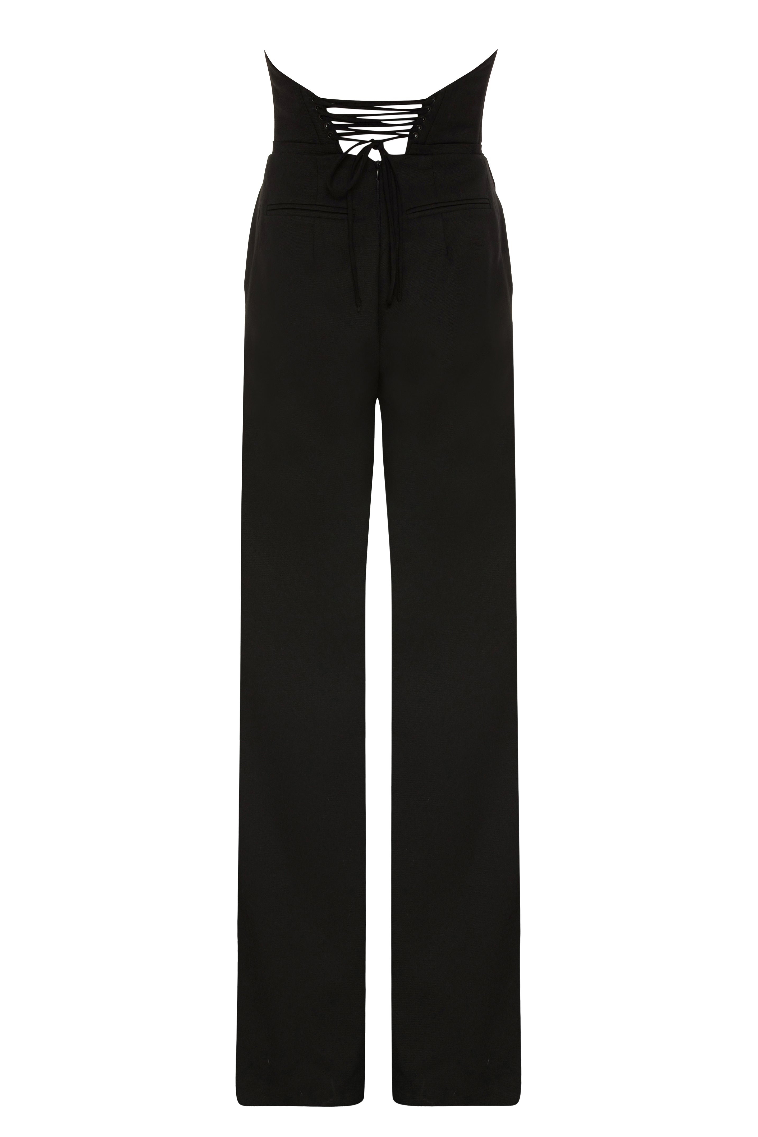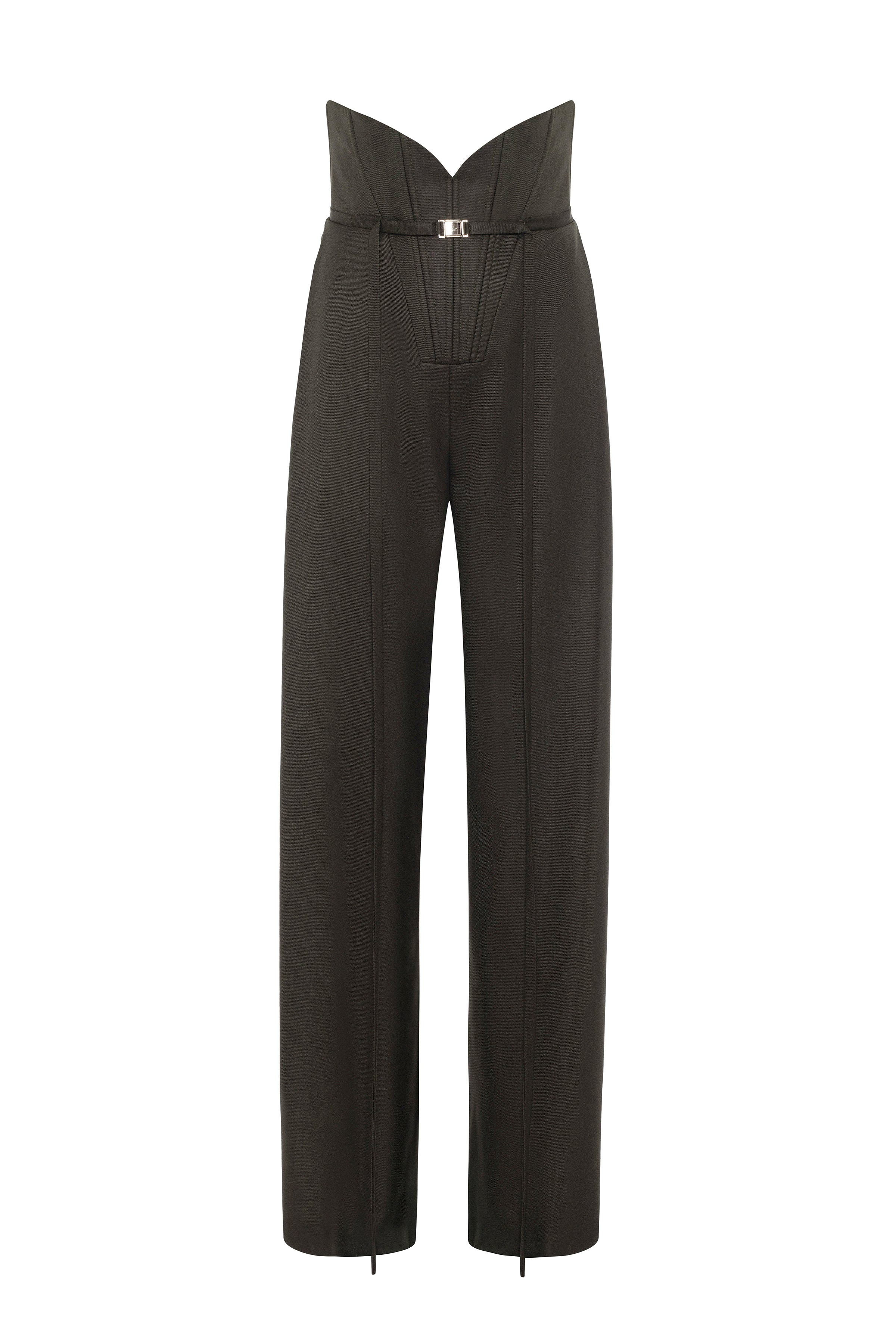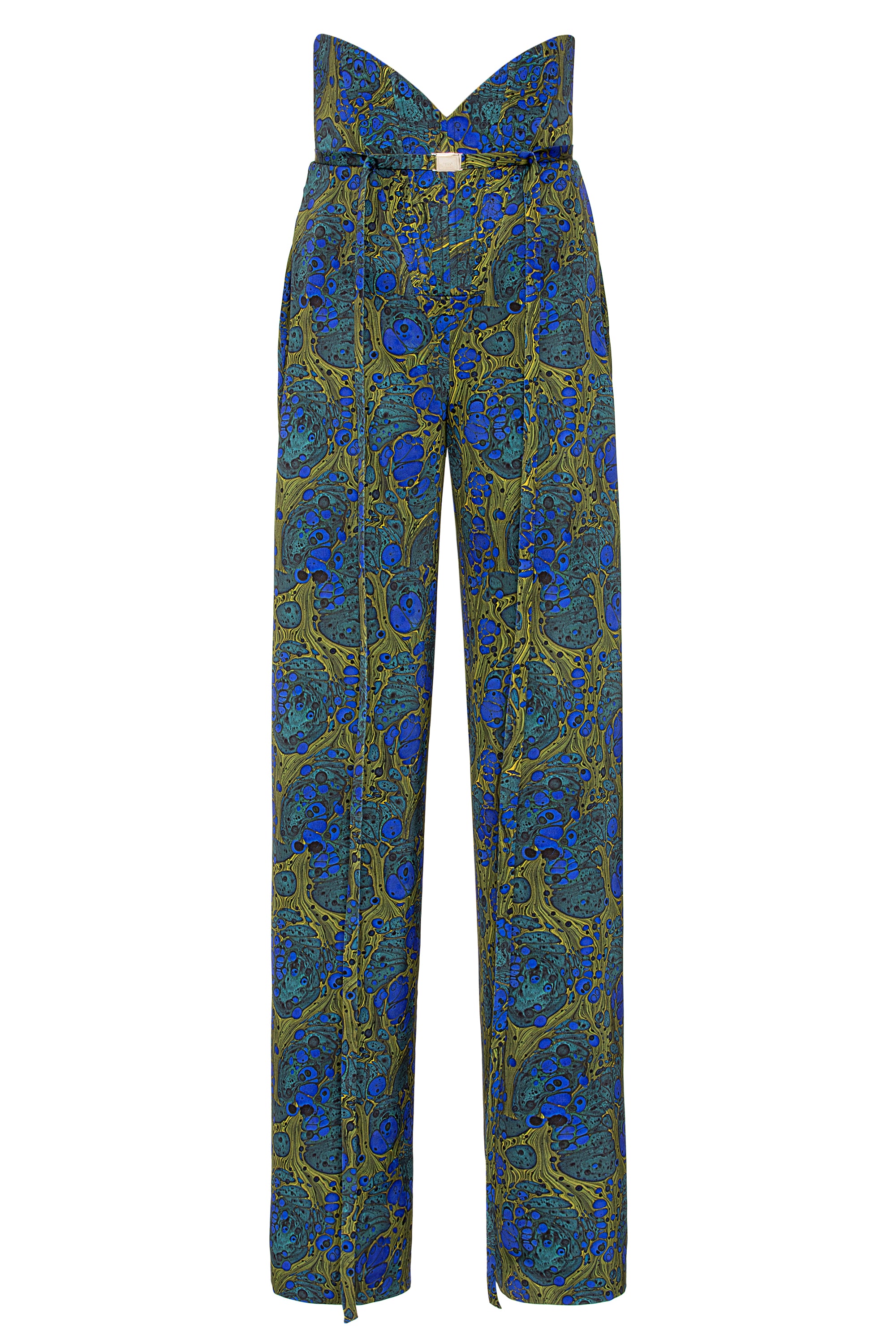 Double leg with adjustable part at the back and pocket details. It is made of viscose fabric.