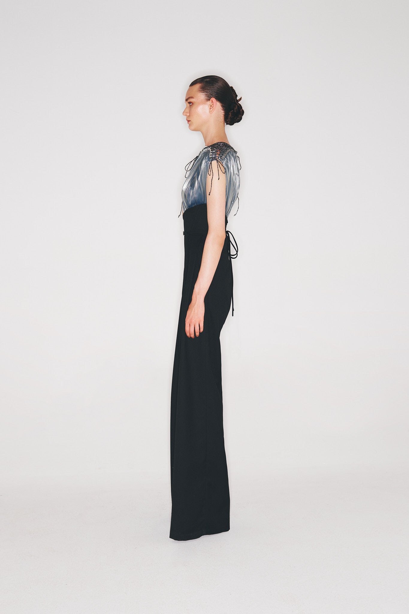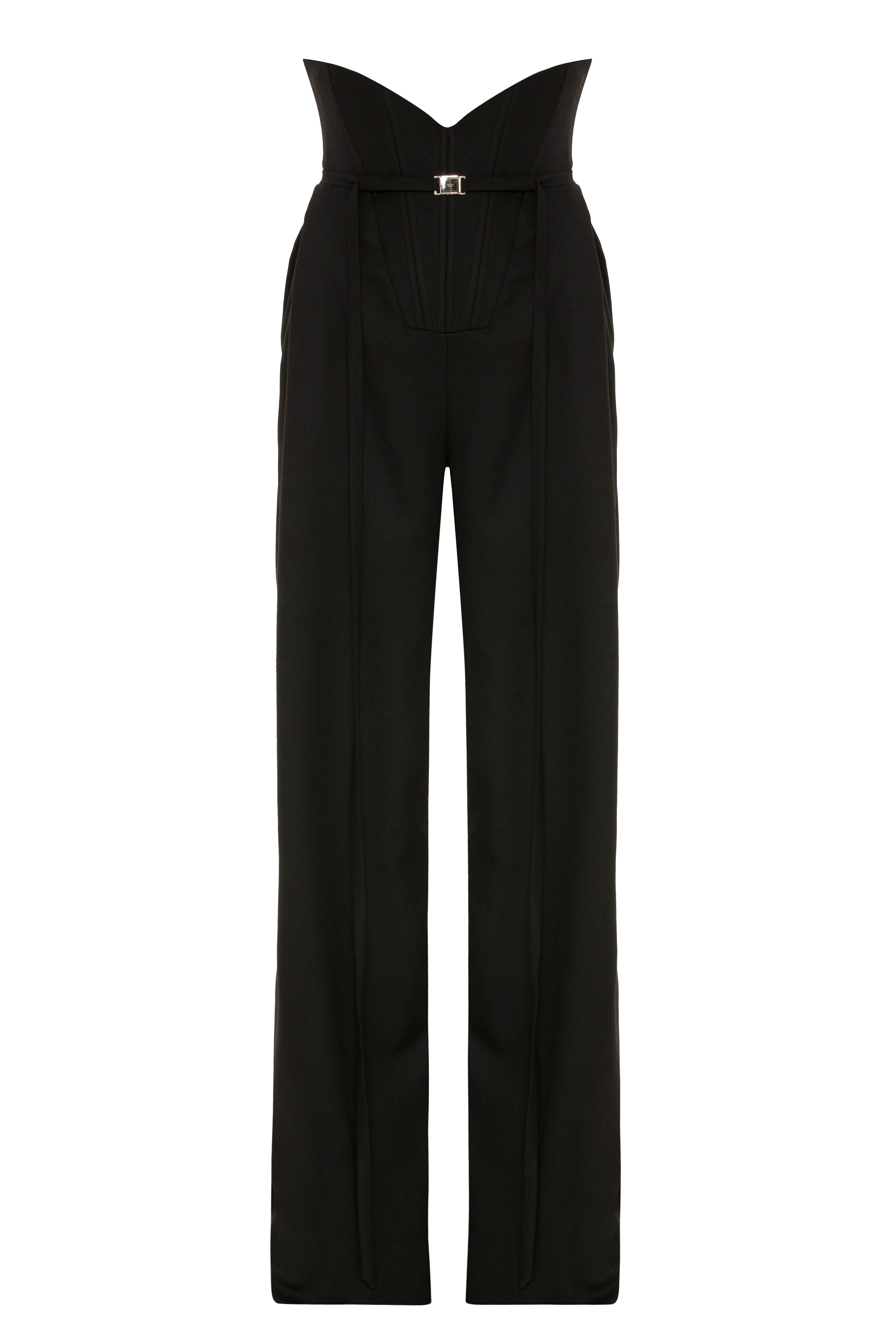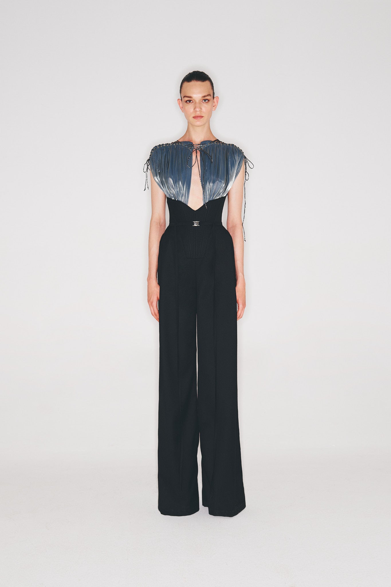 Double leg with adjustable part at the back and pocket details. It is made of viscose fabric.